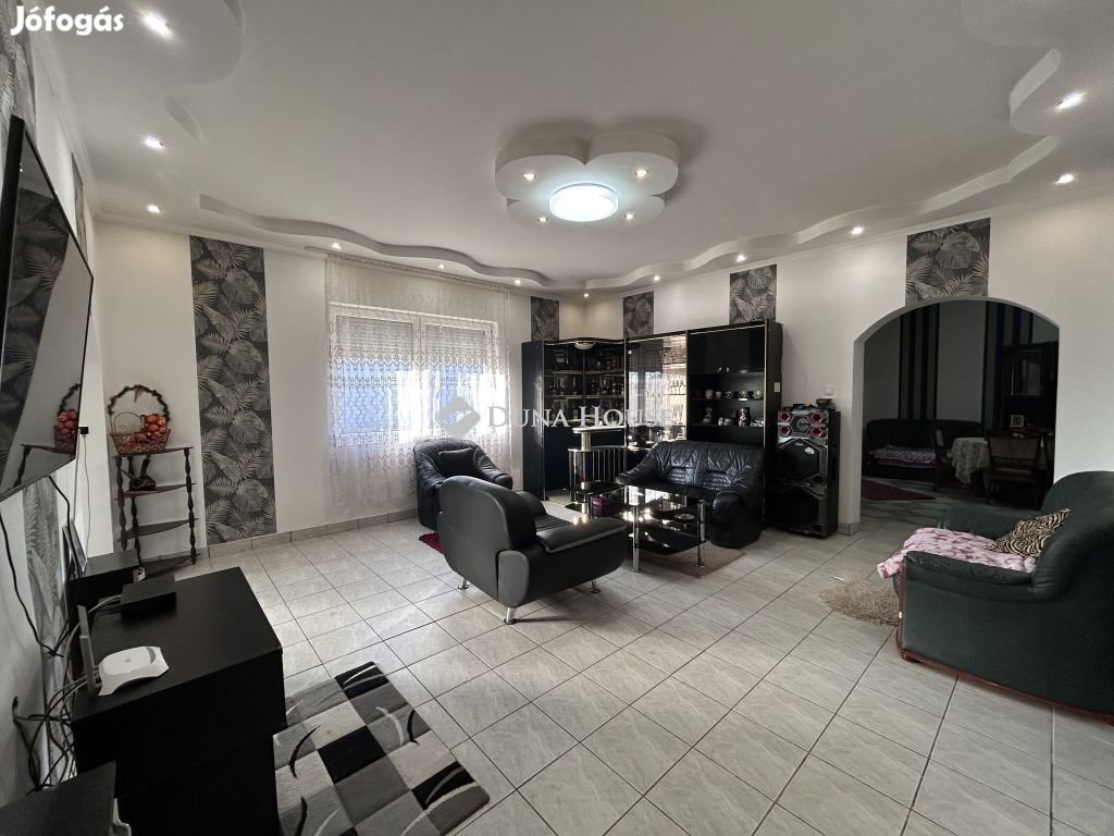 Eladó lakóövezeti környezetben, kiváló elhelyezkedéssel egy nagy alapterületű családi ház, hatalmas telekkel.A település egyik jól megközelíthető, mégis nyugodt részén, 3462 m-es telken kínáljuk megvételre ezt a közel 200 m-es, betonalapra épült családi házat, amely méretének és elrendezésének köszönhetően ideális választás lehet nagycsaládosok, többgenerációs együttélésben gondolkodók vagy akár vállalkozásban is gondolkodó vevők számára.Az épület falazata vegyes, de döntően tégla, a belső terek pedig jól átgondoltan, élhető módon kapcsolódnak egymáshoz. A házban két hálószoba, egy tágas nappali, étkező, konyha, fürdőszoba, külön WC, előszoba és közlekedő kapott helyet. A lakótérhez nyárikonyha és kamra is kapcsolódik, valamint egy 28 m-es pince, amely kiválóan alkalmas tárolásra vagy akár hobbicélokra is.A házhoz hozzáépítésre került egy külön bejárattal rendelkező rész, amelyben WC helyiség, vízkiállásokkal ellátott, szabadon hasznosítható helyiség, valamint külső tároló található. Ez a rész számos lehetőséget rejt magában: alkalmas lehet műhelynek, vállalkozásnak, vendégrésznek vagy akár egy leválasztható lakrész kialakítására is.Az ingatlan teljes közművel ellátott: víz, villany, gáz és csatorna a házban rendelkezésre áll. Az elektromos hálózat 32A + 16A kapacitással bír, a melegvíz-ellátást villanybojler biztosítja. A fűtés jelenleg kályhákkal megoldott, ugyanakkor a gáz be van vezetve az ingatlanba, a gázcsonk kiállások rendelkezésre állnak, így a fűtés korszerűsítése egyszerűen megoldható.Az elmúlt két évben több felújítás is történt az ingatlanban. Megújult a fürdőszoba, új bojler és új sarokkád került beépítésre, valamint korszerű hidegburkolatok kerültek lerakásra. A nyílászárók műanyag, hő- és hangszigetelt ablakokra lettek cserélve, a szobákban és az előszobában új padlóburkolat készült, a belső terek hangulatát pedig beépített, ledes spot világítás teszi modernné. A konyhabútor gépek nélkül a vételár részét képezi.A kert rendkívül tágas, fúrt kúttal és több gazdasági épülettel, így akár gazdálkodásra, állattartásra, kertészkedésre vagy egyszerűen csak egy nagy, zöld élettér kialakítására is alkalmas.Az ingatlan elhelyezkedése kifejezetten előnyös: boltok, pékség, óvoda, iskola, patika és dohánybolt mindössze pár perc sétára található, így a mindennapi élethez szükséges szolgáltatások kivétel nélkül gyorsan elérhetők.Ez az ingatlan stabil alapot kínál, amely már átesett több fontos felújításon, ugyanakkor további korszerűsítéssel könnyedén a következő tulajdonos igényeire szabható. További információért és megtekintésért várom hívását.