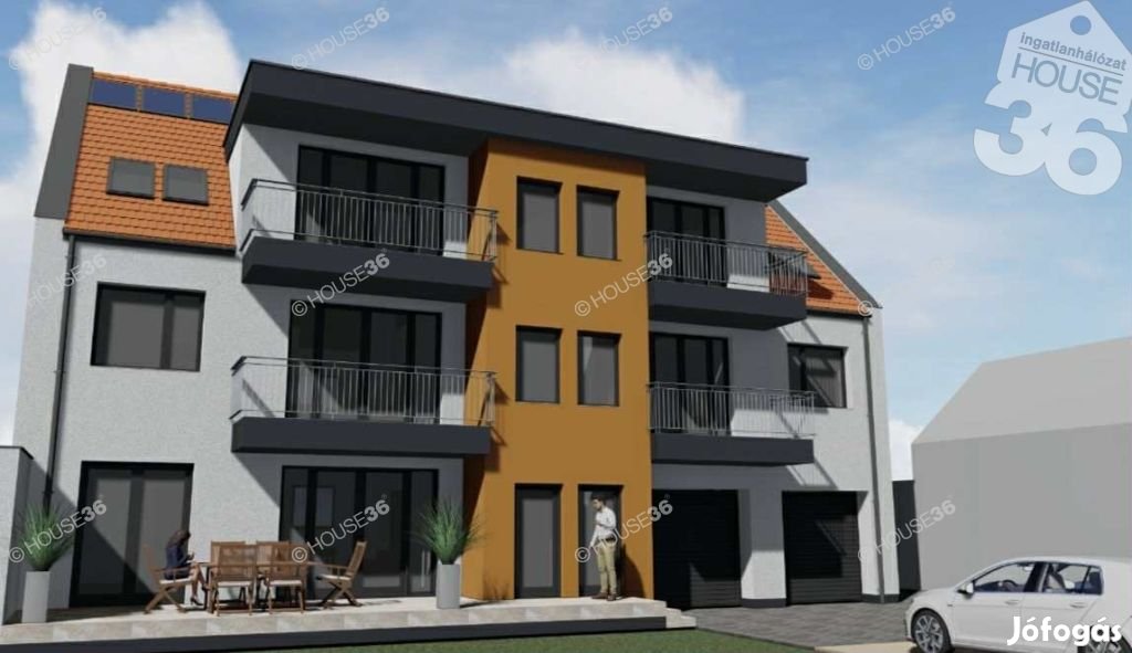 Kecskemét frekventált részén, a Belváros és Máriaváros határán, eladó egy 59,35m-es,lakóterű, nappali + 2 szobás, 1.emeleti lakás, 5,63m-es saját terasszal, egy mindössze 5 lakásos, zárt udvaros, új építésű társasházban.
