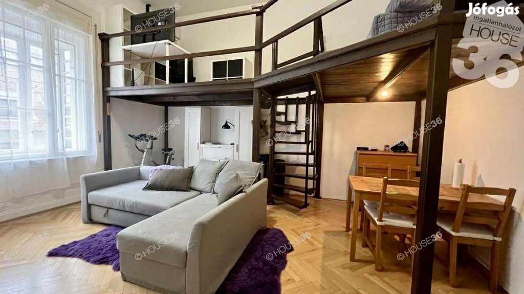 Kecskemét történelmi belvárosában a Rákóczi utcában, első emeleti, 2 szobás, galériás, teraszos, polgári lakás autóbeállóval eladó.