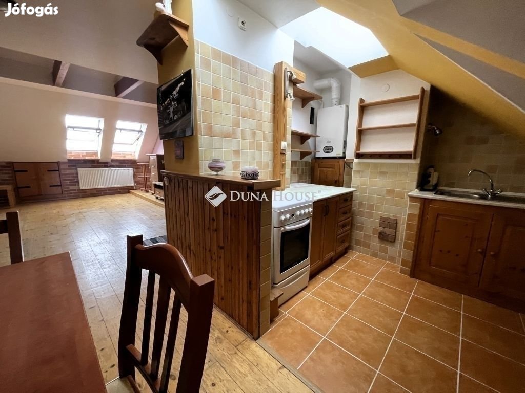 Kecskeméten a Széchenyivárosban, - Dombhoz közel eladó egy nagyon szuper kis lakás, fiatalos hangulatú, egyedi kialakítású! A Lukács György utcai zárt udvaros kis lakópark egyik gyöngyszemét kínálom eladásra! Az eredetileg panel szerkezetű épülettetőterét az 1995-ös kivitelezés alkalmával teljesen beépítették, tégla válaszfalakkal, kiváló hőszigeteléssel további, -egyedi hangulatú, korszerű, kis rezsivel fenntartható lakásokat alakítottak ki! Ez a lakás nappali + 2 külön bejáratú hálószobával rendelkezik. A lakás netto 61 nm, a brutto alapterület pedig 70 nm. Ezen felül még a padlás is hozzá tartozik, ami szintén burkolattal van ellátva, (hajópadló) kiválóan alkalmas további tárolásra. További jellemzők: - saját gázkazán, minimális fűtésköltség- kádas, kádas fürdőszoba, törölköző szárító radiátor- Velux ablakok, fényzáró rolókkal- az egyik szobában függőleges síkú bukó-nyíló fa ablak, redőnnyel- a nappaliban kis költséggel felújítható hajópadló, amely egyedi, meleg hangulatot az a maga természetességével a lakásnak- sok beépített szekrény, polcok, tárolók kialakítva a tetősík alatt- klimatizáltA lakáshoz a földszinten egy saját 1 nm-es külön tároló is tartozik. A társasházban igényes, jó a lakóközösség. Szép, toszta a lépcsőház. Ahátsó bejáraton keresztül egy teljesen zárt, szépen parkosított udvarra jutunk ki, ahol a gyerekeknek biztonságos játszótér van kialakítva, a parkban több pad is el van helyezve! Emiatt kisgyerekes családoknak ez a lakás ilyen szempontból is kiváló választás lehet! Kiválóan frekventált hely! A közelben óvoda, iskola, buszmegálló van! Bevásárlási lehetőségként pár percre a van a LIDL, vagy a Domb áruház! Hívjon, ne hagyja ki! Kis költséggel a saját ízlésére alakíthatja ezt a szuper kis lakást! Befektetésnek is kiváló!