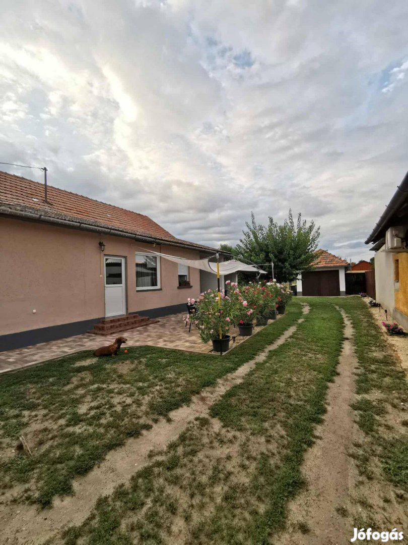 Rendezett udvarral , fúrt kút, térkövezett járdával , külső nyári konyha .Ingatlanközvetítő segítséget egyenlőre nem kérünk.