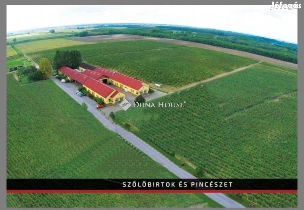 A Hajós-Bajai borvidéken Bajához és a Dunához közel 30 hektár kiváló fajtaszerkezetű, fiatal, öntözhető, védelmi kerítéssel körbevett szőlőbirtok a mellette lévő 13 hektár szántóterülettel együtt eladó!A birtok közepén egy szőlőfeldolgozó, valamint 600.000 liter hűthető tárolókapacitású pincészet áll borpalackozóval, raktárakkal, vinotékával, irodákkal és teljes infrastruktúrával.A szőlőműveléshez és borászati tevékenységhez szükséges erőgép-munkagép és pinceeszköz kapacitás 100 % ban rendelkezésre áll.A pincészet jelenleg is folyamatosan dolgozik, a palackozott italokat szállítási szerződések alapján élelmiszer-kereskedelmi üzletláncokhoz és exportra szállítjuk.Amennyibe nfelkeltette érdeklődését keressen Bizalommal a hét bármely napján!