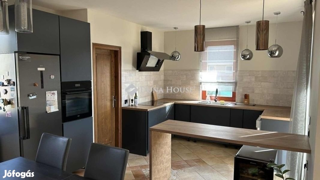 Kecskemét közkedvelt részén, Kadafalván eladó egy gyönyörű, 172 m-es, amerikai konyhás, tágas nappalis + 3 szobás mediterrán stílusú családi ház, napelemmel, 2100 m-es parkosított telken, dupla garázzsal és hangulatos terasszal.