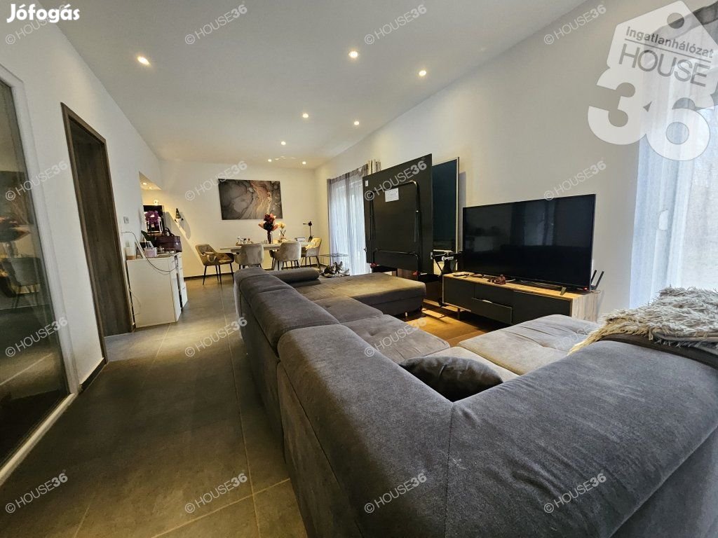 Kecskeméten, Kadafalva elején, 2019.évi, szigetelt, tégla építésű, 75 m2-es, nappali+ 2 szobás szélső sorház, saját nagyobb kerttel, garázzsal és zárt udvari beállóval eladó! Akár teljesen bútorozva (benne jacuzzi, finn szauna).