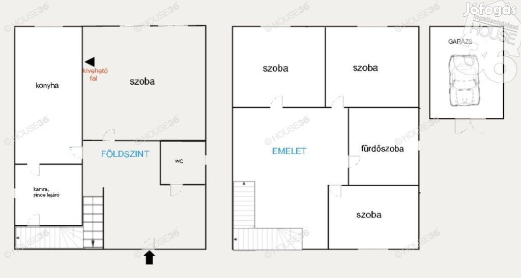 Aházhoz garázs tartozik, és 2 gépkocsival beállási lehetőség az udvarba