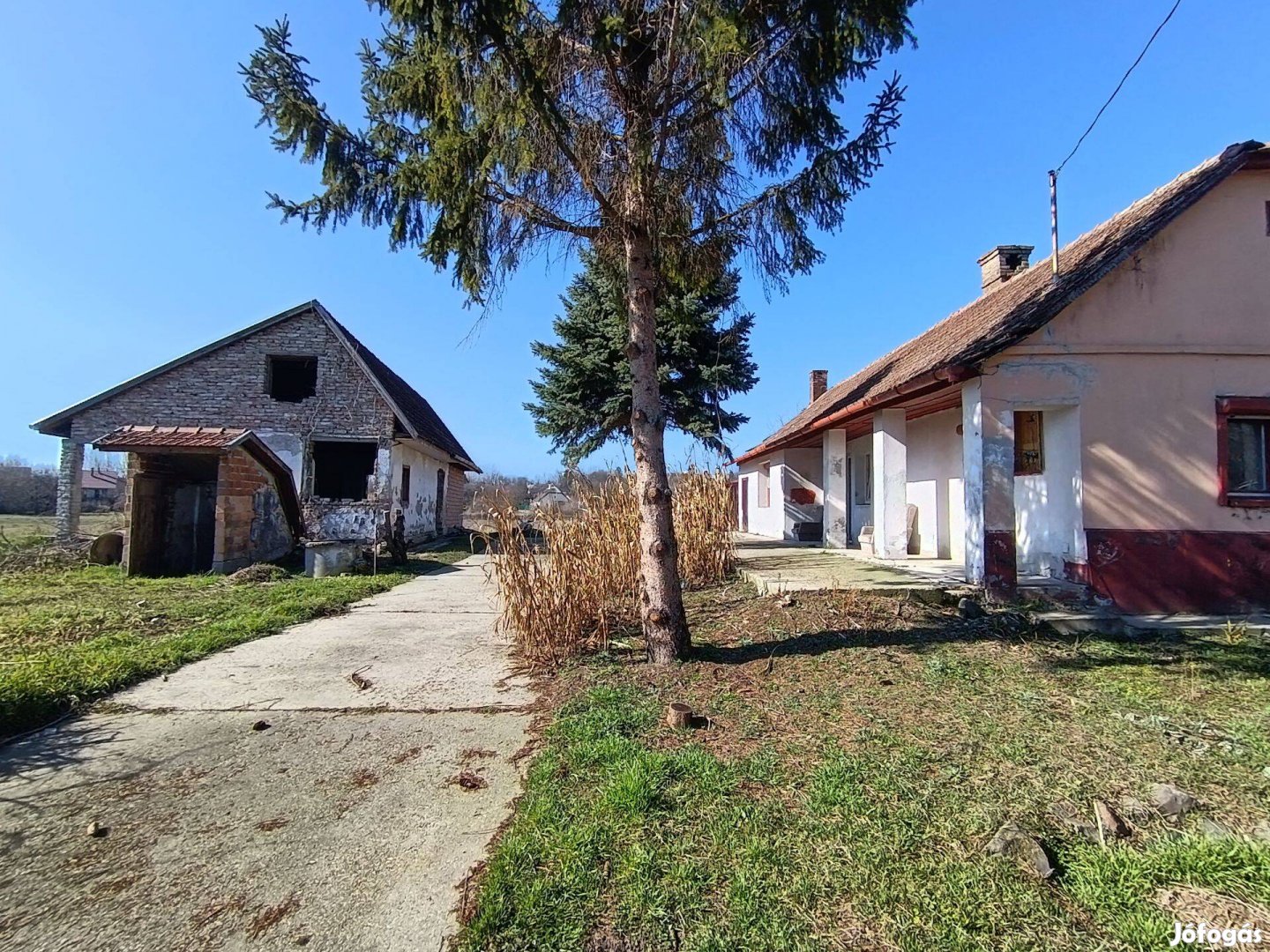 Ez a nagyobb épület felújítandó, de szerkezetileg stabil, jó állapotú tetővel és masszív falazattal rendelkezik.