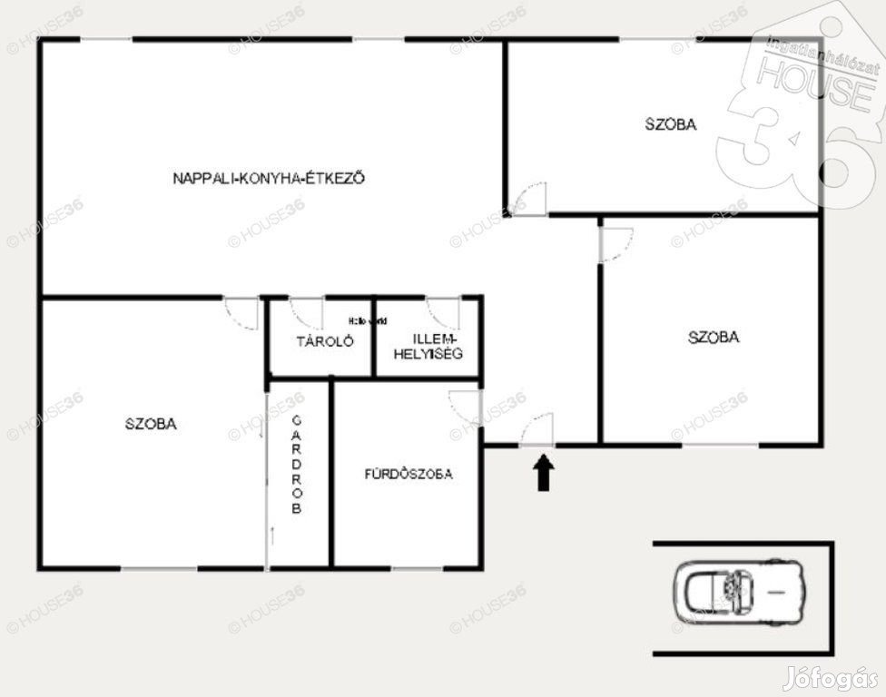 Elrendezés: nappali + 3 külön nyíló szoba