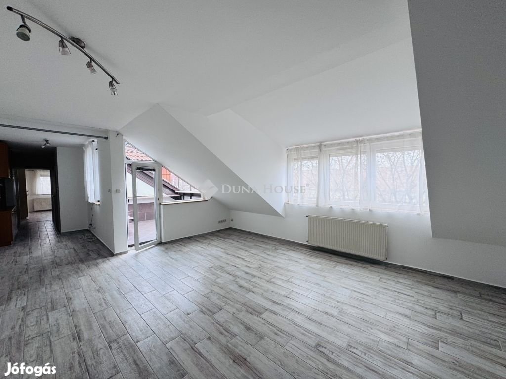 Eladó tetőtéri lakás Pécs közkedvelt Uránváros városrészében!Pécs egyik legkedveltebb, zöldövezeti részén, Uránvárosban eladóvá vált egy 1990-ben épült, kiváló állapotú, egyedi gázfűtéses tetőtéri lakás. Az ingatlan elrendezése és tágas tereinek köszönhetően ideális választás akár családok számára is.A lakás nettó alapterülete jól átgondolt elrendezésű:két különnyíló hálószoba,egy tágas, világos nappali,külön konyha és étkező,fürdőszoba és külön WC,kamra,dolgozósarok a gardrób részeként.A lakáshoz tartozik egy kb. 15 m-es nagyméretű terasz, amely kiváló helyszínt biztosít pihenésre vagy baráti összejövetelekre.A lakás fenntartási költsége rendkívül kedvező, a fűtést és meleg vizet egyedi gázkazán biztosítja.A minőségi konyhabútor és beépített konyhai gépek a vételár részét képezik, ahogy a jelenlegi bútorzat is megegyezés tárgyát képezi.Az ingatlanhoz saját tároló is tartozik, a ház pedig rendezett, zöldövezeti környezetben található, jó szomszédsággal és kiváló infrastruktúrával: boltok, iskola, óvoda, buszmegálló néhány perces sétával elérhető.