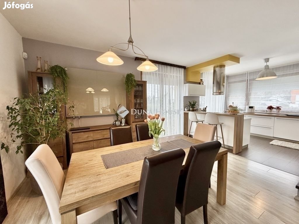Családi ház hangulatú, tágas otthon eladó a csendes, zöldövezeti Donátusban!Pécs egyik legkedveltebb, panorámás részén, Donátusban, a Csoronika dűlőben kínálunk megvételre egy 2010-ben épült társasházi ingatlant, amely kialakításának köszönhetően teljes mértékben családi ház érzetét nyújtja ez a ritka kombináció igazán különlegessé teszi!A 124 m-es, kétszintes, amerikai konyhás nappali + 4 SZOBÁS otthon ideális választás nagyobb családok számára is. Az ingatlan tágas, világos terekkel rendelkezik, kiváló elosztású és kertkapcsolatos.Alsó szint:-Tágas, napfényes amerikai konyhás nappali-Közvetlen kijárat a parkosított, kertre és fedett teraszra-Egy hálószoba, melyhez saját zuhanyzós fürdőszoba és WC tartozik-háztartási helyiségFelső szint:-3 külön nyíló szoba-Két szobából kijárat a 25 m-es, panorámás teraszra-Fürdőszoba-Külön WCMűszaki jellemzők:-Kondenzációs gázkazános fűtés-Riasztórendszer-3 db klímaAz ingatlan csendes, nyugodt, kiváló donátusi környezetben található, gyönyörű panorámával tökéletes választás azok számára, akik természetközeli, mégis városhoz közeli otthont keresnek.Igény esetén megvásárolható egy önálló, 17 m-es garázs, melynek ára: 10.000.000 Ft.Ha egy családi ház hangulatát keresi, de társasházi környezetben, ezt az ingatlant mindenképpen érdemes megtekinteni!