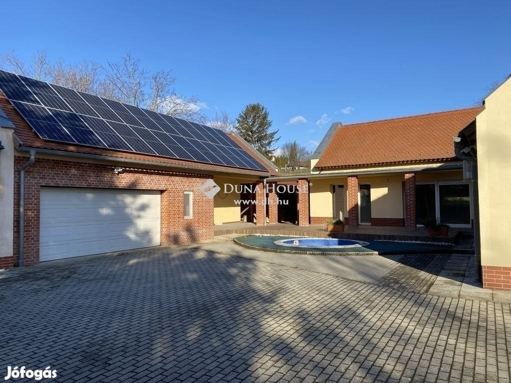 Nagykozárban, Pécstől 10 percre, eladó egy 150nm alapterületű, amerikai konyha nappalis, 4 hálószobás, 3 fürdőszobás, nagy teraszos, modern kialakítású, egyszintes családi ház, 3 állásos garázzsal, fedett autóbeállóval, 2739nm-es területtel.Az ingatlan U alakban körbe öleli a mediterrán teraszt és a medencét, ezzel teljes intimitást biztosítva. A ház déli fekvése és nagy méretű nyílászáróinak köszönhetően rendkívül világos. A tágas nappaliból és az étkezőből közvetlen kijárat nyílik a mediterrán teraszra és a medencéhez. A 4 külön nyíló hálószoba közül az egyik saját fürdőszobával rendelkezik. A ház elrendezése nagyon átgondolt, mivel a hálószobák teljesen elkülönülnek a közös terektől, ezzel nem zavarva a pihenni vágyókat. Az ingatlanban gardrób és háztartási helyiség is helyet kapott. Az udvarban található egy 3 állásos garázs, elektromos kapuval, elektromos autó töltővel, továbbá egy fedett 3 állásos autóbeálló. A garázsból további háztartási helyiségek nyílnak, melyek fűthetők és mosdóval felszereltek. A terület szépen gondozott, térkővel burkolt. Extrák: - 20cmes külső szigetelés- Purhabos födém szigetelés- Fűtés gáz Cirkó + klíma, padló fűtés , szobákban radiátor- Elektromos alumínium redőny- 10 KW napelemes rendszer- Elektromos autó töltő- Elektromos garázskapu- Elektromos kapunyitás- Kamera rendszer - Klíma- Riasztó- MedenceA ház méreteit és adottságát tekintve, akár nagycsaládosok számára, illetve a tágas életteret kedvelőknek is tökéletes választás.Ingatlan tehermentes, rövid időn belül költözhető!Amennyiben felkeltette érdeklődését, keressen bizalommal!
