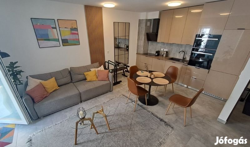 Pécs - Belvárosban, a Felsőmalom utcában, újépítésű lakóparkban egy 1. emeleti amerikai konyha nappali + külön hálós nagy teraszos lakás kiadó!