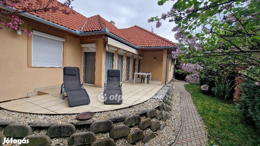Csak a nappali+konyha rész 43 négyzetméter. Az innen nyíló terasz 14 négyzetméter. 2003-ban épült, kiváló állapotban van. 2 wc, 2 klímaberendezés van. A fürdőszobában kád és tusoló is van. A kényelmet még fokozza a mosó és gardróbszoba, a kamra, és a hobbi helyiség. Minden nyílászáró műanyagból van redőnnyel, és szúnyoghálóval. A tetőtér nem beépíthető, viszont nagy tároló lehet, mert fel lehet állni a magassága miatt. Az udvarban van egy műanyag kerti tároló ház a kerti eszközöknek. A házban riasztó, és kamerarendszer ügyel a biztonságról. Igény esetén teljesen berendezve is eladó. Budapesti 2 szobás garázsos lakás cserealapot képezhet a megegyezésben.