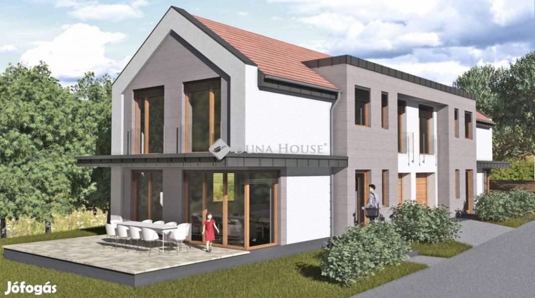 Pécs-Mecsekoldal jól megközelíthető részén eladó egy ÚJ ÉPÍTÉSŰ, ÖRÖKPANORÁMÁS, kétszintes, 129m2-es, tágas amerikai konyha nappali+3 szoba, gardrób, dupla fürdő-wc, vendég mosdó elosztású, levegő hőszivattyús rendszerrel (padlófűtéssel) fűtött IKERHÁZ 428m2-es, privát, sík telken 26m2-es terasszal, 17m2-es, elektromos kapus garázzsal.Az ingatlan prémium minőségben és magas műszaki tartalommal kerül kivitelezésre. Az épület napfényes, ÉNY-i tájolású, falai 30-as Porotherm téglából készülnek, 15cm-es grafitos homlokzati hőszigetelést kapnak, nyílászárói pedig Kömmerling rendszerű ablakok és ajtók, melegpárás merevítéssel, Roto NT vasalattal, kívül natúr fa színben, belül fehér színben a földszinten motoros zsaluziával, a szobákban pedig elektromos redőnnyel ellátva. Szintenként 1-1 klíma kerül beépítésre, ezt a vételár tartalmazza.A burkolatok és szaniterek még választhatók! Riasztó és klíma előkészítés minden szobába készül.Extraként kérhető:- vízlágyító és víztisztító berendezés- riasztó és kamerarendszer 3 db kamerával, DVR központi rögzítővel, távoli eléréssel- további klímák beszerelése- felszíni parkoló kialakításaA kulcsrakész vételár: lakás 169,9M Ft+ garázs 10M FtHitel és állami támogatások igénybe vehetők!Várható átadás: 2026 nyaraTovábbi értékes információért keressen bizalommal akár hétvégén/munkaszüneti napokon is!