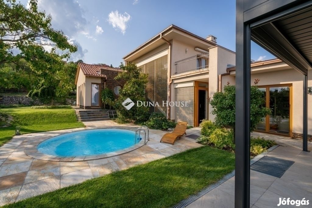 Eladó egy ritka gyöngyszem ingatlan, mely 2000 m2-es telken lévő családi otthon, 380 m összterülettel büszkélkedhet, ideértve a fő lakóteret, amely 5 hálószobával , rendelkezik . Ezenkívül egy külön 55 m-es lakást, egy 2 beállásos garázst, tárolókat, valamint egy több mint 100 m-es, természetes kőburkolatú terasszal, pergolával ,parkosított kerttel, halas tóval .Legyen szó akár nagyobb családokról, akár olyanokról, akik szeretik a vendégeiket luxus körülmények között fogadni, ez az ingatlan tökéletes választás lehet. Az elszeparált lakrész lehetőséget nyújt vendégek kényelmes elszállásolására vagy akár egy nagyobb korú gyermek önálló életterének kialakítására is.Az ingatlan nem csupán a luxus szolgáltatásaival, hanem esztétikai értékeivel is kiemelkedik. A magas minőségű anyagok felhasználása és a részletekre való odafigyelés egy olyan otthont teremt, amely minden igényt kielégít. A panorámás kilátás pedig még inkább emeli az ingatlan értékét, hiszen minden napja egy festménybe illő látvánnyal kezdődhet.A kényelem és a luxus jegyében épült ingatlanban minden megtalálható, amire csak vágyhat: egy gyönyörűen kialakított medence, szauna, pezsgőfürdő, hangulatos teraszok, és természetesen a téli estéket kellemessé tevő kandalló. A napfényes terek gondoskodnak arról, hogy otthona mindig világos és meleg legyen, míg a modern klímaberendezés a nyári napokat is kellemessé teszi.Összefoglalva, ez az ingatlan nem csupán egy lakóhely, hanem egy olyan befektetés, amely értékálló marad a jövőben is. Ha Ön egy olyan otthont keres, ahol a luxus, a kényelem és a lélegzetelállító kilátás mindennapos, ne keressen tovább. Fedezze fel, mit kínál ez a különleges ingatlan és tegyen egy lépést álmai otthona felé.
