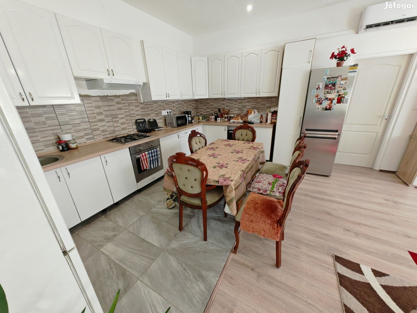 Az ingatlan elosztása átgondolt és praktikus: a tágas, napfényes amerikai konyhás nappaliból csillagszerűen nyílnak a hálószobák és a vizesblokkok, így biztosítva a család minden tagjának a magánszférát. A fürdőszoba igazi komfortzóna, ahol a modern kád mellett egy külön zuhanyzó is helyet kapott. A reggeli készülődés kényelmét a fürdőtől különálló, plusz mellékhelyiség teszi teljessé.