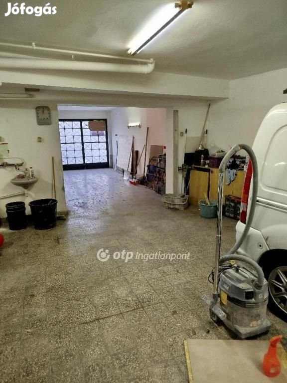 3 autó elfér úgy, hogy nem akadályozzák egymást a ki-be közlekedésben. Negyedik is elfér a folyosón. A képen látható fehér autó egy aknán áll. Víz villany, szennyvíz van. A felette levő háztól külön vízórával ellátott WC és kézmosó is van. Szintén külön mérője van a villamos rendszernek. Jelen pillanatban a tulajdonos raktárnak használja, de két hét alatt kipakolja, amikor el lesz adva.