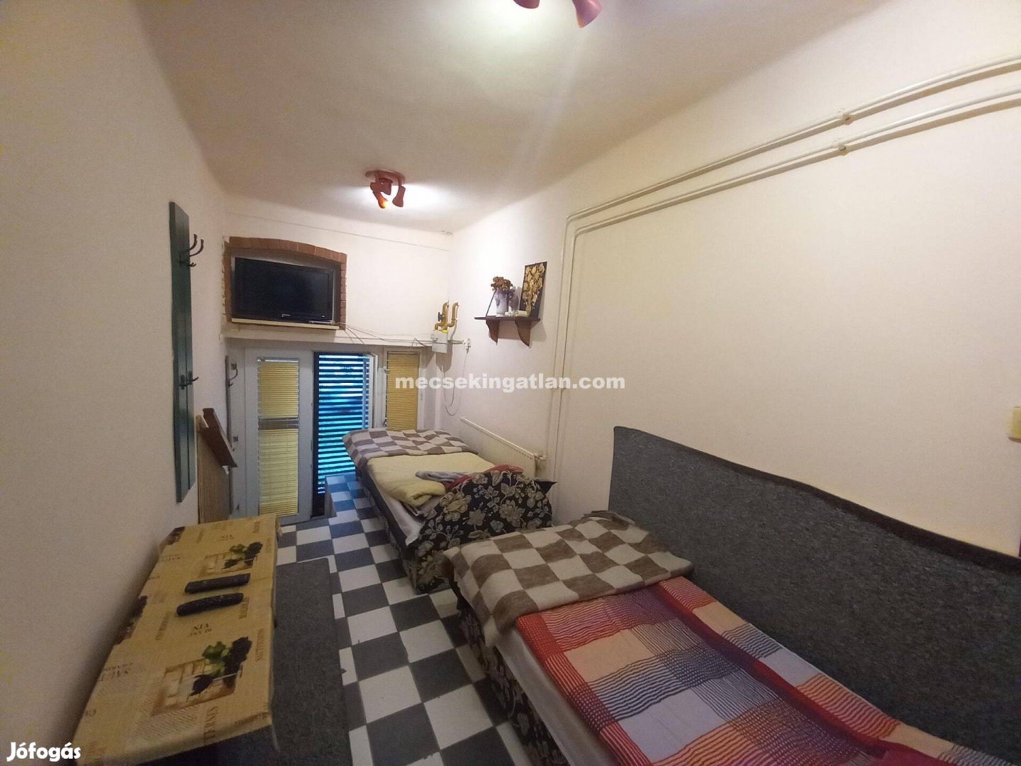 Kiadó akár 1 éjszakára is. 1 éjszaka ára 7900 ft. Gépesítés: mikró, kávéfőző, hűtőgép, televízió. A szobán kívül egy zuhanyzó wcvel külön helyiségben található. Főzési lehetőség nincs.
