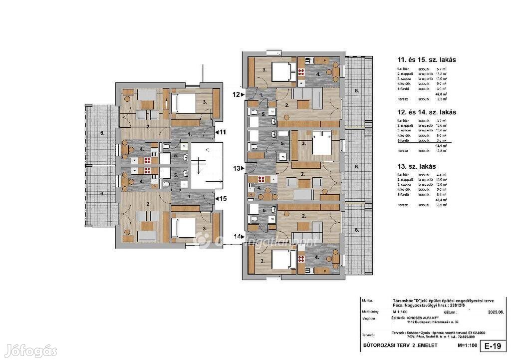 A D épületben 15 db lakás eladó, már most lefoglalható, átadás 2026. július végén.