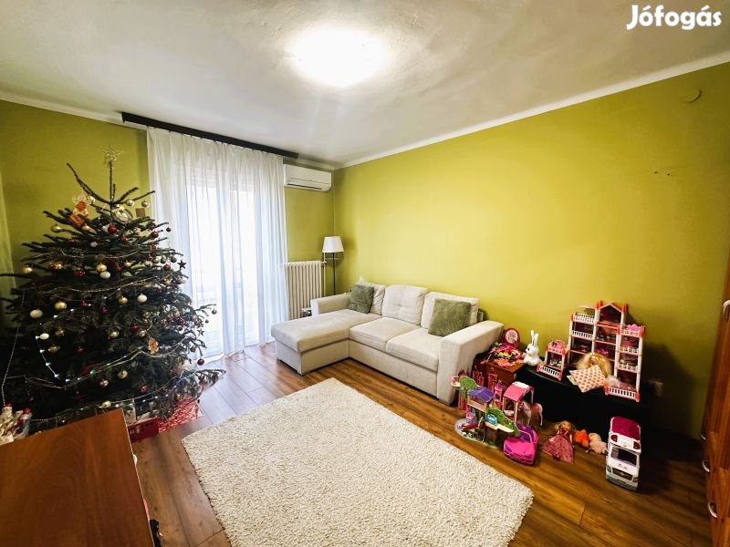 A burkolatok jól átgondoltak: a szobákban laminált padló, a közlekedőben, konyhában és fürdőben hidegburkolat. Az elmúlt időszakban több korszerűsítés is történt, így az új nyílászárók redőnnyel és szúnyoghálóval felszereltek, a bejárati ajtó cseréje megtörtént, a fürdő új bojlert kapott, a nappaliban pedig hűtő?fűtő klíma gondoskodik a komfortérzetről egész évben.