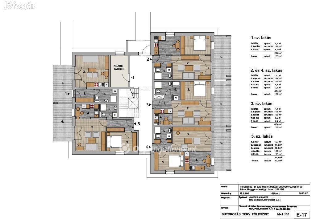 A D épületben 15 db lakás eladó, már most lefoglalható, átadás 2026. június végén.