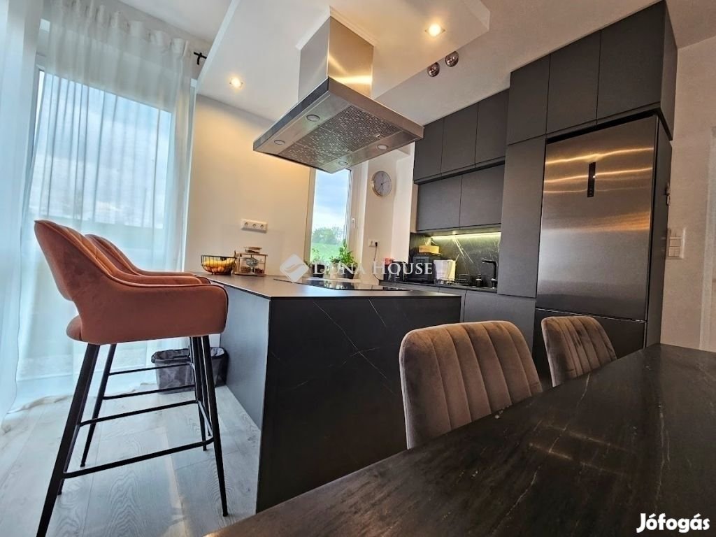 Eladó újszerű kertvárosi lakás, saját parkosított kertkapcsolattal!!!!!Pécs egyik csendes, zöldövezeti részén kínálunk megvételre egy 2023-ban átadott 92 m-es földszinti lakást, amely minden igényt kielégítő belső kialakítással és kivételes külső adottságokkal rendelkezik.Kertkapcsolat és extra területekA lakáshoz tartozik egy 240 m-es kizárólagos használatú, parkosított kert, benne egy könnyűszerkezetes, 10 m-es kisházzal ideális tárolónak vagy hobbihelyiségnek.Két kényelmes terasz, mindkettő beépített, kinyitható árnyékolóval.A kertből kiskapun keresztül is eljuthatunk a két autóbeállóhoz, melyek közvetlenül a lakás előtt helyezkednek el.Belső elrendezés 3 hálószoba Tágas nappali-konyha-étkező egy légtérben 2 igényes fürdőszobaPrémium felszereltség FAP olasz hidegburkolatok Hansgrohe falba süllyesztett csaptelepek Blanco gránit mosogató és csaptelep a konyhában Minőségi német konyhabútor kompakt munkapulttal, konyhaszigettel Új, elektromos fehér alumínium redőnyök minden ablakon Hőszivattyús padlófűtés + fancoil hűtés a kellemes klímáért egész évben Alacsony rezsiköltségek, energiahatékony, és letisztult, igényes belső terek.Elhelyezkedés szempontjából is ideális:A belváros autóval mindössze 7 perc, de a tömegközlekedés is kiváló. A mindennapi ügyintézéshez szükséges szolgáltatások csupán egy percre találhatók: Tesco, Rossmann, gyógyszertár, minden gyalogosan is gyorsan elérhető.