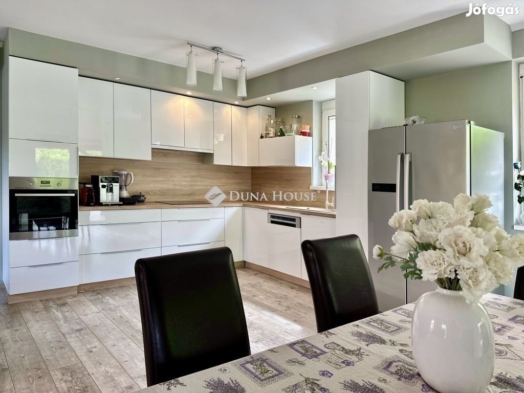 Eladásra kínálunk egy panorámás, 300 m-es, 7 szobás, dupla komfortos, téglaépítésű , akár 2 generáció együttélésére is alkalmas családi otthont. Ne hagyja ki ezt a különleges lehetőséget, hogy a város felett, de mégis közel annak szívéhez élhessen. A mindkét fürdőszoba designja különleges figyelmet kapott, ahol a minőségi burkolatok és szaniterek mellett egyedi világítás gondoskodik a relaxáló atmoszféráról. Itt a nap bármely szakában élvezhetjük a kényeztetést és a privát wellness élményét. Fedett teraszon Jakuzzi található.Elektromos autótöltés kiépítve. A modern, teljesen felszerelt konyha minden igényt kielégít, legyen szó akár egy gyors reggeliről vagy egy nagyobb családi vacsoráról. Az ingatlan klímával , elektromos redőnnyel felszerelt. Keressen minket bizalommal az ingatlan megtekintéséhez, és tegyen szert erre a kivételes otthonra. Ingatlan beszámítás lehetséges.
