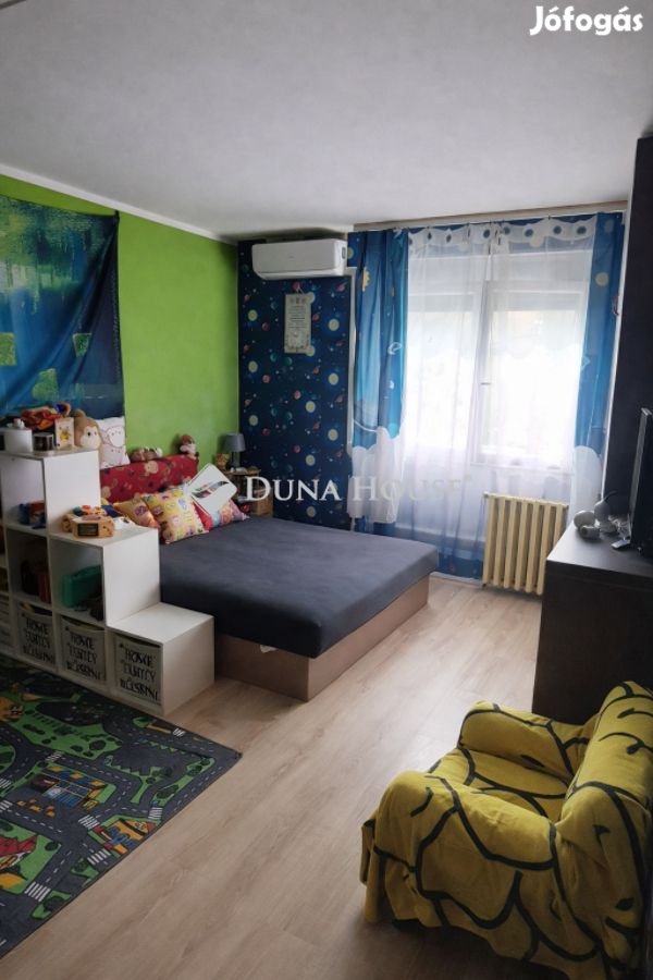 Pécsen, Árpádvárosban, a Csikor Kálmán utcában eladó egy 59 m-es, 2,5 szobás lakás, egy négyemeletes társasház második emeletén.Az elosztása jól használható: a szobák külön nyílnak, így kényelmes saját otthonnak, de kiadásnál is praktikus megoldás. A helyiségek burkolata vegyes, a szobákban laminált padló, a többi helyiségben könnyen karbantartható felületek találhatók.A fürdőszoba korábban felújításra került, a nyílászárók nagy része már műanyag, redőnnyel és szúnyoghálóval felszerelt. A konyhában az eredeti ablak maradt.A lakás műszaki állapota rendezett, a fűtés távhővel megoldott, a nappaliban klíma segíti a komfortot.Közös tároló rendelkezésre áll, a parkolás a ház előtt díjmentes.Az ingatlan csendes, zöld környezetben található, Árpádváros nyugodtabb részén, így saját célra és befektetésre is jó alap lehet.