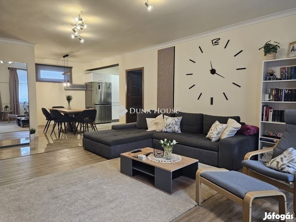 Eladásra kínálom Máriagyűd egyik kedvelt, rendezett utcájában ezt a gondosan karbantartott, 1996-ban épült családi házat, amelynek jelenlegi tulajdonosai az építéstől kezdve ugyanazok, így az ingatlan teljes előélete ismert.A ház Porotherm 38-as téglából épült, teljes körű homlokzati, lábazati és födémszigeteléssel rendelkezik. A beton födém lehetőséget biztosít a tetőtér beépítésére, így igény esetén a lakótér tovább bővíthető.Az ingatlan energiatakarékos megoldásokkal felszerelt: egy 5 kW-os napelemes rendszer működik rajta, amely még 8 évig szaldó elszámolásban marad, és akár 7,5 kW-ig bővíthető. A rendszer jelenleg fedezi a teljes villamosenergia-felhasználást.A fűtésről gázkazán és vegyes tüzelésű kazán gondoskodik, padlófűtéssel kiegészítve. A kellemes hőmérsékletet egész évben két inverteres klíma és egy hűtő-fűtő klíma biztosítja. A fűtési rendszer igény szerint hőszivattyúval is tovább fejleszthető.A 33 m-es melléképületben egy 23 m-es, szerelőaknás garázs, valamint egy 10 m-es tároló és kazánház kapott helyet. A melléképület mögött betonozott udvarrész található, amely alkalmas medence kialakítására is.Az ingatlan korszerű, távfelügyeletes riasztórendszerrel felszerelt, amely a nyílászárókra és a garázsra is kiterjed, így a biztonság is megoldott.A ház ideális választás mindazok számára, akik egy jól karbantartott, energiatakarékos, bővíthető otthont keresnek nyugodt környezetben.Megtekintés és további információ miatt várom hívását bizalommal.