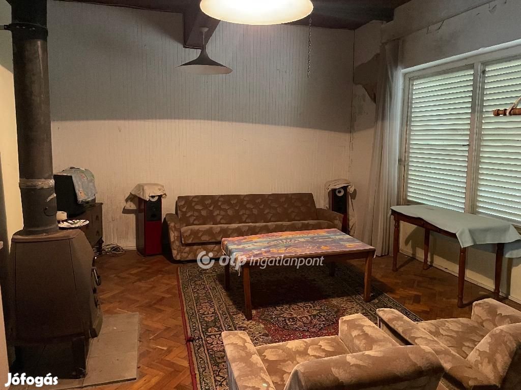 Eladó a Gyula városához tartozó Városerdő üdülőterületen egy 479 m2-es telken fekvő, tetőtér beépítésű ház, melynek összes alapterülete 65 m2. A ház téglából épült, földszintjén egy 30 m2-es, amerikai konyhás nappali - hatalmas ablakokkal - és a fürdőszoba található, ahonnan a teraszra is kijuthatunk. A nappaliból egy nagyon szép, masszív falépcső visz fel az emeletre. A tetőtér egy tágas, egy légterű szoba, melynek teljes területe 35 m2, de az 1,9 m feletti belmagasságú terület is 18 m2, melynek tágas hatását a tetősíkból kiugró ablakok is növelik. Innen egy 3 m2-es loggia is nyílik, melyről a szomszédos erdőre látunk. A ház elektromos- és vízvezetékét a jelenlegi tulajdonos kicseréltette, valamint a tetőtéri ablakokat is hőszigeteltre cseréltette. A ház fűtését egy nagyon jó minőségű kályha biztosítja. Mind a földszinten, mind a tetőtérben nagyon szép a mennyezeti faburkolat. A falakon belül vannak javítanivalók, pereg a festék, és néhol vakolat javításra is szükség van, de némi ráfordítással egy csodálatos hangulatú, tágas nyaralót, de akár állandó lakhatásra alkalmas házat is tudhatunk magunkénak. Városerdő közúton 8 km-re található Gyulától, közvetlenül a Fekete-Körös mellett. Jó minőségű kerékpárúton is, de vonattal is megközelíthető. Már most is nagyon sok család állandó jelleggel lakik ezen a hangulatos, csupa zöld, madárcsicsergős üdülőterületen. Amennyiben felkeltette érdeklődését ez a gyöngyszem, hívjon bizalommal, és nézzük meg együtt!