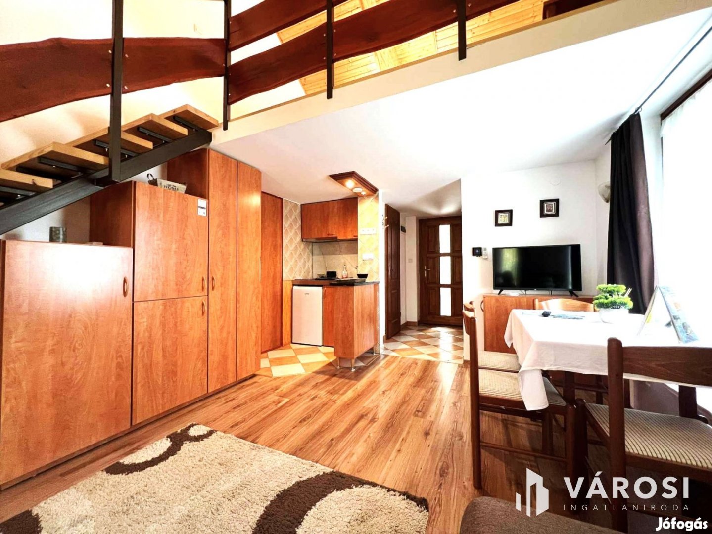 eladóvá vált egy négylakásos társasházi lakás, kétszer kétszintes, galériás ingatlana, berendezve, bútorozottan, minden kiegészítővel felszerelten.