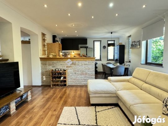 Az ingatlan két külön bejáratú, jól szeparált lakóegységből áll, melyek mind funkciójukban, mind kialakításukban önállóan is működőképesek. Az utcafronti épület jelenleg vendégházként üzemel, bejáratott vendégkörrel és állandó érdeklődéssel. Itt négy tágas, világos szoba található, melyek mindegyike saját fürdőszobával rendelkezik, ezáltal kényelmes és privát elhelyezést biztosít a vendégeknek. A szobákhoz egy közös társalgó, konyha-étkező és fedett terasz is tartozik, ahol a vendégek reggelizhetnek, kávézhatnak, vagy egyszerűen csak élvezhetik a kert nyugalmát. Az épület a közelmúltban teljeskörű gépészeti felújításon esett át: új villany-, víz- és gázvezetékeket kapott, a fűtés modern kondenzációs kombikazánnal működik, és az ablakokat, bejárati ajtót is hőszigetelt műanyagra cserélték. A tetőszerkezet új, strapabíró szalagcserép borítással.