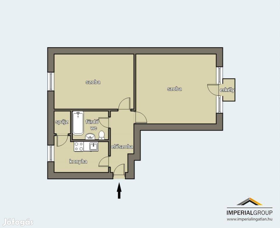 - 2 szoba, előszoba, konyha, spájz, fürdőszoba WC-vel, pince