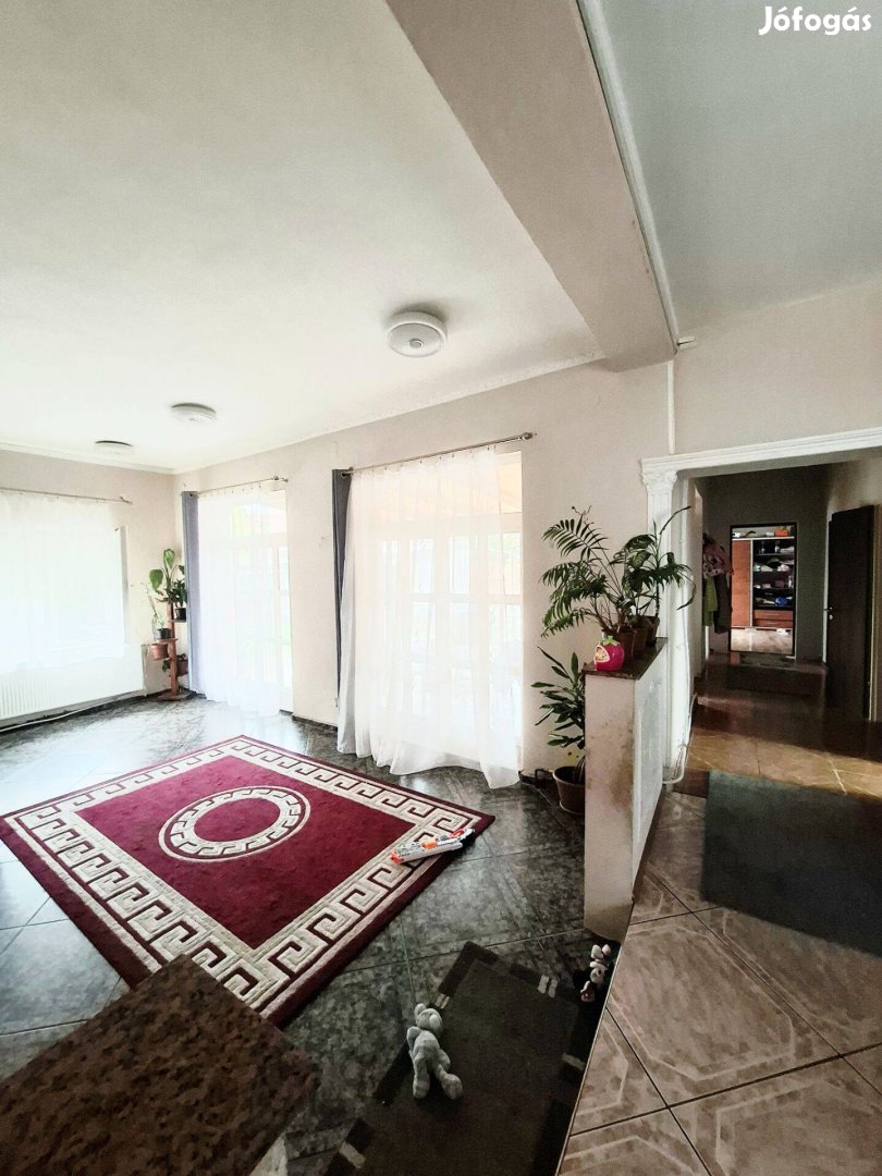 Az ingatlan ablakai hagyományos fa szerkezetűek hőszigetelt üveggel és redőnnyel ellátottak, a bejárati ajtó több ponton záródó biztonsági! Fűtése gázkazánnal megoldott, a hőleadás radiátorokkal történik! A szobák külön nyílnak, laminált lappal borítottak, falaik festettek! A többi helyiség járólappal burkolt! Wc külön helyiségben is megtalálható! A fürdőszobák felújítottak, a vízvezetékek cseréje megtörtént! A nappali ( 55 m2- es), amerikai konyhás stílusú, benne egyedi konyhabútor kapott helyet! A nappaliból a fedett teraszra ki lehet jutni! A kert 460 m2- es, összközműves, sík! Rajta garázs és kamra található meg! Parkolni a ház előtt is lehetséges!