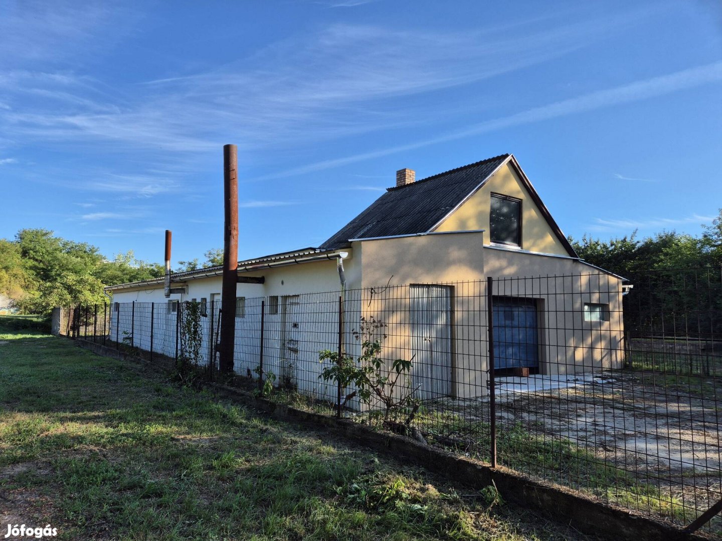 A telek bekerített, részben füvesített, részben betonozott, így parkolásra és szabadtéri tárolásra is ideális. További területrész elkerítésére is van lehetőség az új bérlő igényei szerint.