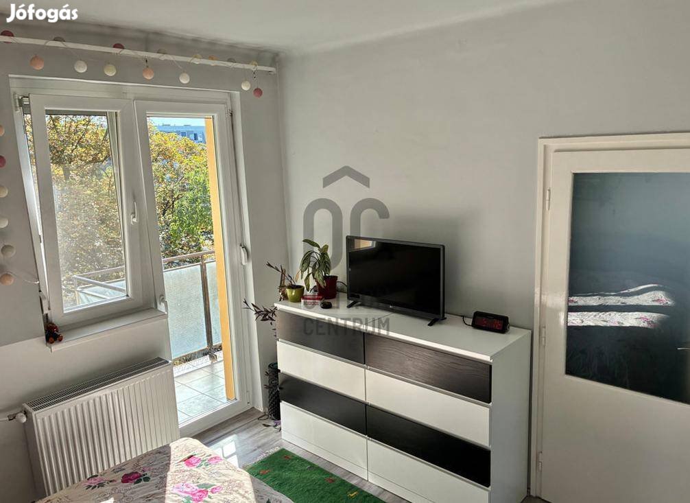Eladó két szobás lakás, a nappaliból és a hálóból is nyílik egy-egy erkély. Déli tájolású, így világos, a lakótelep nyugodt környezete miatt pedig csendes is. A nyílászárók műanyagok, a bejárati ajtó is új. A vezetékek nagy része rézre lett cserélve. A konyha és fürdő is felújított, a WC és fürdőszoba külön lett választva. A folyosóról nyílik két kis helyiség, amelyek tárolásra, kamrának, gardróbnak használhatóak.