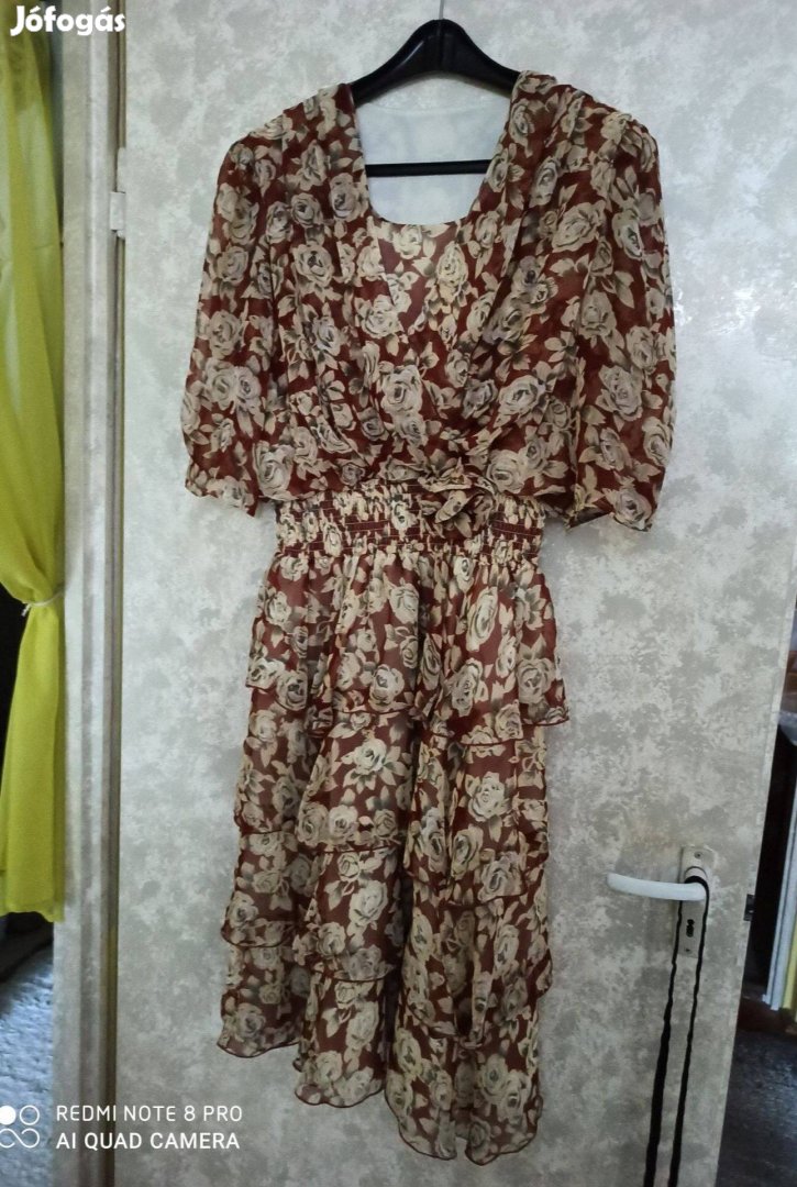 Barna rózsamintás nagy méretű muszlin ruha 48-as