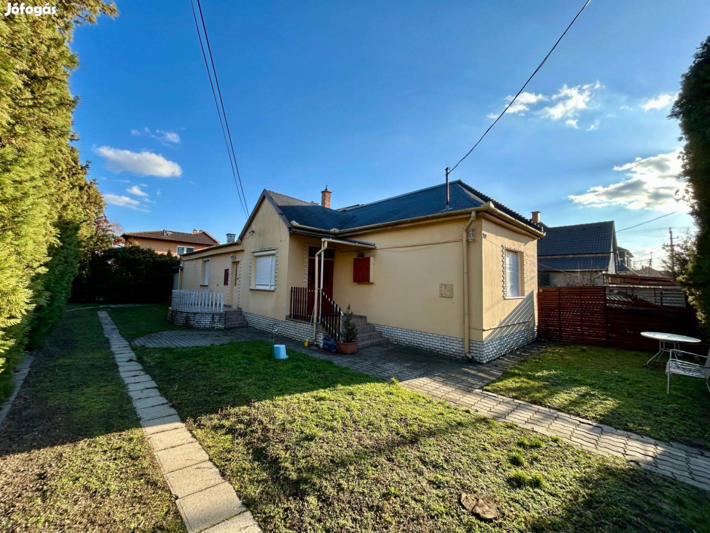 A kert teljesen privát a nagyméretű tujáknak köszönhetően, akár több gépjárművel is be lehet állni.