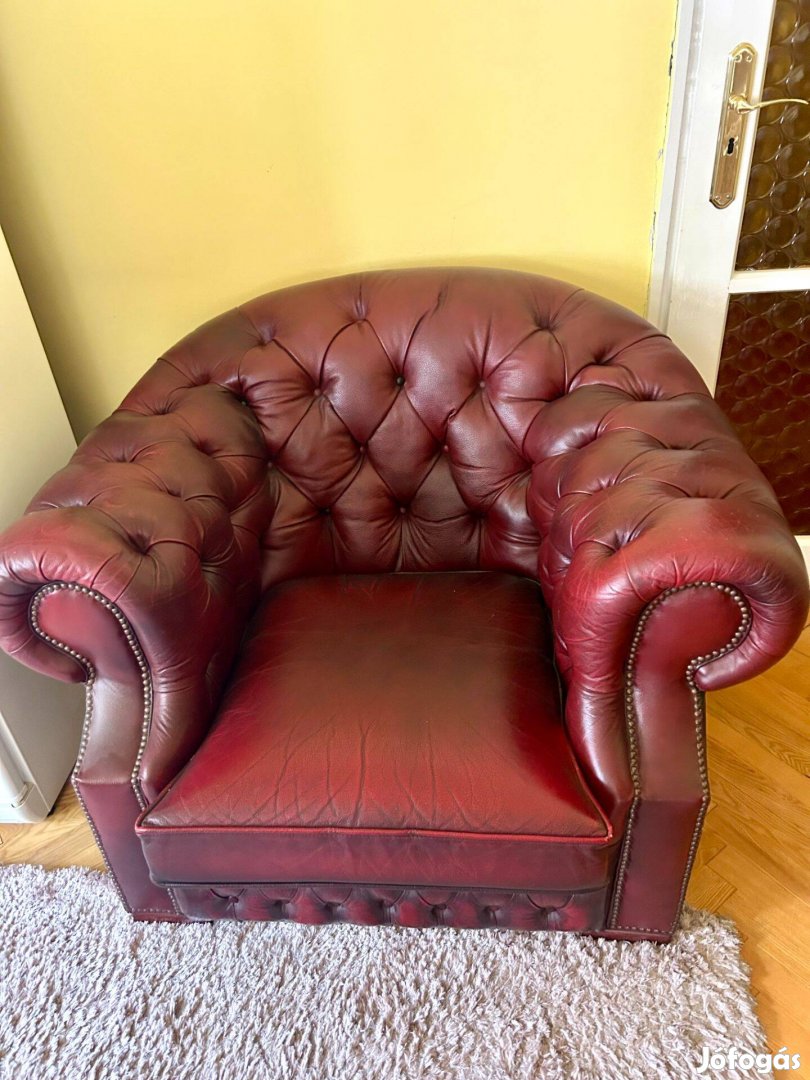 Kitűnő állapotú Chesterfield fotel, mély bordó színű fotel.