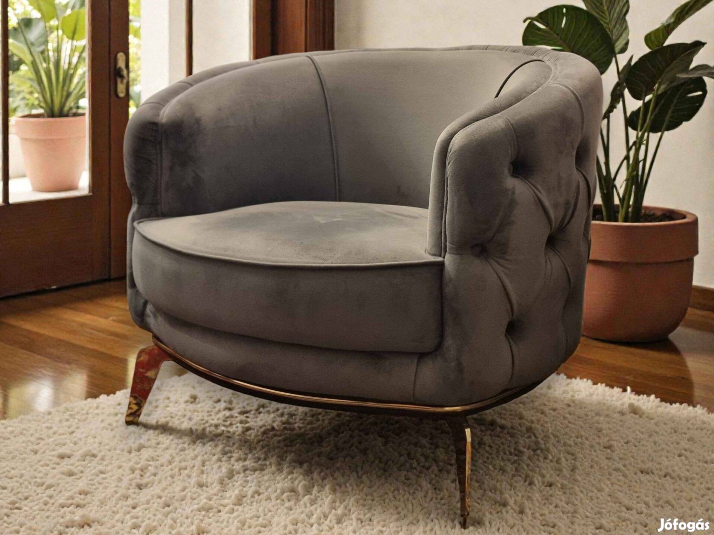 Chesterfield stílusú, szürke bársony-plüss kör fotel