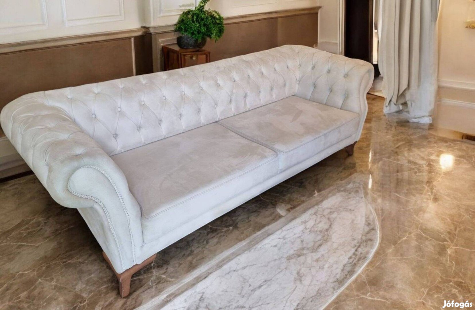 Gyönyörű chesterfield stílusú bézs Alcantara hasított bőr jellegű kanapé