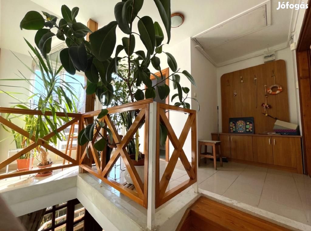 - A zárt lépcsőház, amely a két lakás belső tereit nem érintve használható, tehát a lakók egymástól függetlenül, egymást nem zavarva tudnak a két szintre közlekedni.