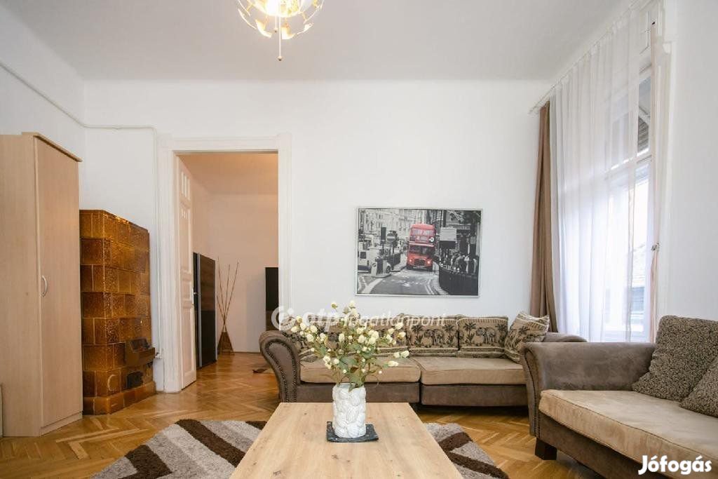 Eladásra kínálok egy 100 nm-es, frissen felújított, 3 tágas szobás, nagy konyhás, déli tájolású, erkélyes polgári lakást, egy kivül-belül ápolt társasház legfelső, 3. emeletén (lift nincs). Az ingatlan modern elektromos fűtéssel rendelkezik, ugyanakkor a tulajdonos megőrizte a lakás hangulatát adó két cserépkályhát is. Csodálatos eredeti parketta, 3,5 méteres belmagasság, felújított eredeti fa ajtók tükrözik vissza a régmúlt hangulatát. A lakás teljes berendezéssel együtt eladó, a bútorok az eladási ár részét képezik, így az ingatlan azonnal költözhető.