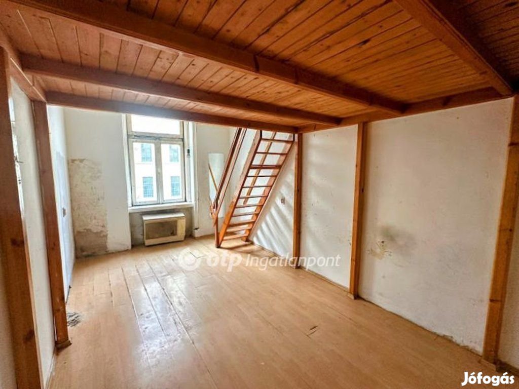 Eladó Budapest belvárosában, a 8. kerületben, a Horváth Mihály tér közelében egy különleges adottságokkal rendelkező, duplán galériázott lakás. Az ingatlan egy jó állapotú, rendszeresen karbantartott, téglaépítésű társasház első emeletén található, lift nélküli épületben, kulturált lakóközösséggel.