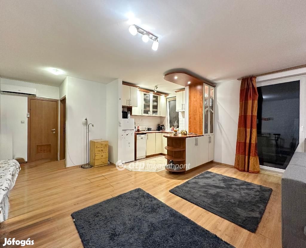 Világos, nagy teraszos, amerikai konyhás lakás eladó a Haller park mellett, kiváló befektetési lehetőségként. A 2000-es években épült modern társasház ötödik emeletén található, nyugati fekvésű, fiatalos hangulatú otthon tágas, napfényes tereivel és nagy teraszával egyszerre kínál otthonos légkört és igazi városi életérzést, közvetlen kijárattal a parkba. Az ingatlan elhelyezkedése rendkívül kedvező, a ház előtt villamosmegálló található, a város központja percek alatt elérhető, a metró és a Lurdy Ház bevásárlóközpont pedig mindössze öt perc sétára van. A modern épületben tágas lift, portaszolgálat, biciklitároló, számzáras kapunyitó és kaputelefon gondoskodik a lakók kényelméről és biztonságáról, a lakás pedig biztonsági ajtóval felszerelt. A bejárat egy kis előtérbe vezet, innen nyílik a világos, amerikai konyhás nappali és a tágas hálószoba. A nappalihoz tartozó dolgozósarok akár külön hálóként is leválasztható, így home office megoldásra is alkalmas. A nappali és a háló egyaránt a lakás teljes hosszában futó, hangulatos teraszra nyílik, amely a gondozott belső kertre néz. Két napellenző gondoskodik a kellemes árnyékról, így a terasz tökéletes helyszíne lehet pihenésnek vagy baráti összejöveteleknek. A fürdőszoba és a WC külön helyiségben található, a fürdőben mosógép is elhelyezhető. A lakás teljesen gépesített, egyedi gyártású konyhabútorral felszerelt, hűtővel, mosogatógéppel, kerámia főzőlappal, sütővel és mikróval. A nappaliban és a hálószobában légkondicionáló biztosítja a kényelmet, internet- és kábeltelevízió-csatlakozás kiépítve. Parkolásra a ház teremgarázsában bérelhető vagy megvásárolható parkolóhely kínálkozik, de a környéken fizető övezetű utcai parkolás is lehetséges. Az ingatlan ideális választás egyedülállóknak, pároknak vagy kisgyermekes családoknak, ugyanakkor remek befektetési lehetőség is, hiszen kedvező elhelyezkedésének és modern felszereltségének köszönhetően könnyen kiadható. Ez a modern, otthonos lakás tökéletesen ötvözi a városi élet kényelmét és a park közelségének nyugalmát.