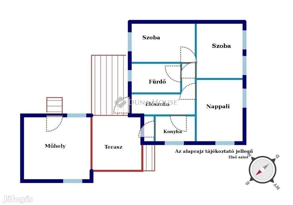 Mindkét szinten 3-3 szoba, étkezőkonyha, fürdőszoba, külön WC került kialakításra. A két szint önálló bejárattal megközelíthető.