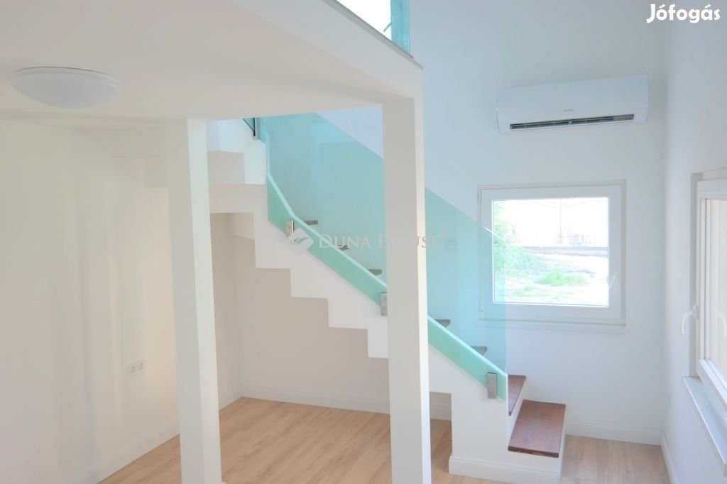 A XX. kerületben, kis forgalmú utcában, új építésű épület közvetlen szomszédságában, 2025-ben teljes körűen felújított, saját kertrésszel és tárolóval rendelkező ház ELADÓ!Az ingatlan azonnal költözhető, frissen felújított.Az épület 10 cm-es külső szigetelést kapott, a teljes tetőszerkezet új, Leier cserepekkel fedett.A fűtött alapterület 38 nm, melyhez egy galéria, valamint egy gardrób tartozik.A belmagasság minden helyiségben 280 cm, kivéve a fürdőt és a hálót. A fürdő felett gardrób, a hálóban pedig az üvegkorlátos galéria került kialakításra, amit gipszbeton lépcsővel tudunk megközelíteni.A lakás teljes műszaki felújításon esett át: új elektromos hálózat új víz- és szennyvízcsövek modern burkolatok vízálló laminált parketta a fürdőben padlófűtés A szobák H tarifás, kedvezményes árszabású villanyórára kötött GREE klímákkal hűthetők-fűthetők. A konyhában IKEA konyhabútor került beépítésre.Az ingatlan csak készpénzes vevő részére eladó, jelzáloghitel, Otthon Start vagy egyéb lakáshitel nem vehető igénybe, kizárólag személyi kölcsön lehetséges.További információért keressen telefonon vagy üzenetben!