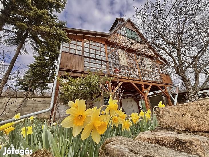 Békásmegyer-Ófaluban ELADÓ egy panorámás 84 négyzetméteres ÖNÁLLÓ CSALÁDI HÁZ 37 négyzetméteres fedett terasszal és kocsibeállóval 1590 négyzetméteres telken.