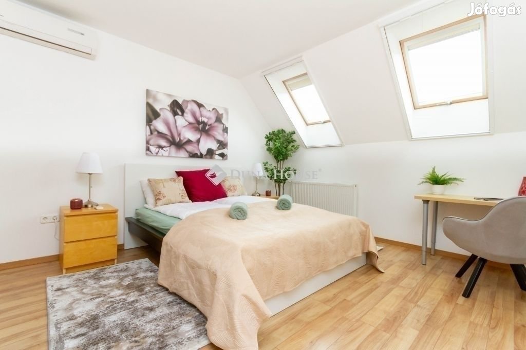 A lakás 2009-ben, emeletráépítéssel épült, mely lehetőséget adott a régi, hagyományos építési móddal épült házaktól eltérő, a mai modern igényeket kielégítő elrendezés kialakítására. Az alsó szinten előszoba, amerikai konyha + nappali, kamra, külön bejáratú félszoba, mellékhelyiség, gardróbok találhatóak, a kényelmes lépcsőn megközelíthető felső szinten pedig 2 db külön bejáratú szoba (1+1), terasz, fürdőszoba, gardrób helyezkedik el.