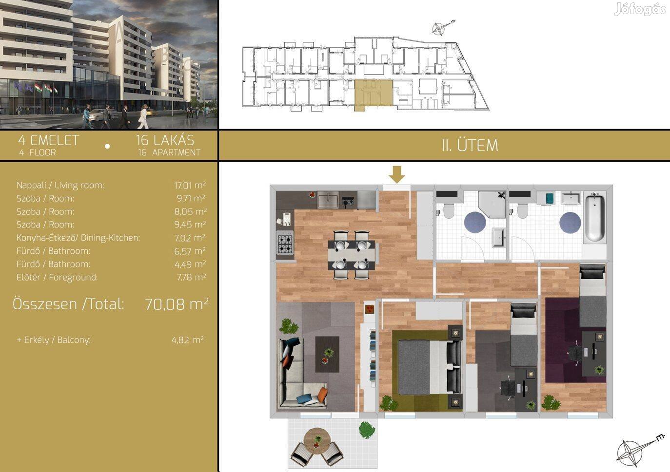 Eladó a 19. kerületben egy 70 m2-es, 4 szobás, 2 fürdőszobás, erkélyes új építésű lakás.