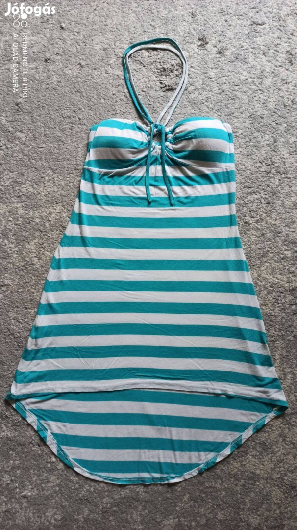 Fehér csíkos aszimmetrikus nyári ruha nyakba kötős, mell részénél szivacsos, keveset használt, jó állapotú 2500 Ft-ért eladó.